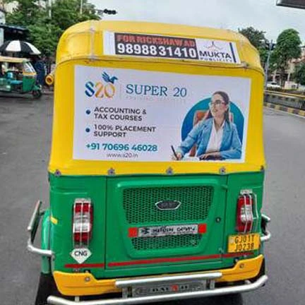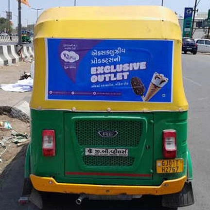 • Auto rickshaws are a daily mode of transportation for millions of people in Ahmedabad and Gujarat. By utilizing their banners as advertising platforms, businesses can effectively communicate their brand messages to a vast audience. Here are some reasons why auto banner advertising is so impactful: